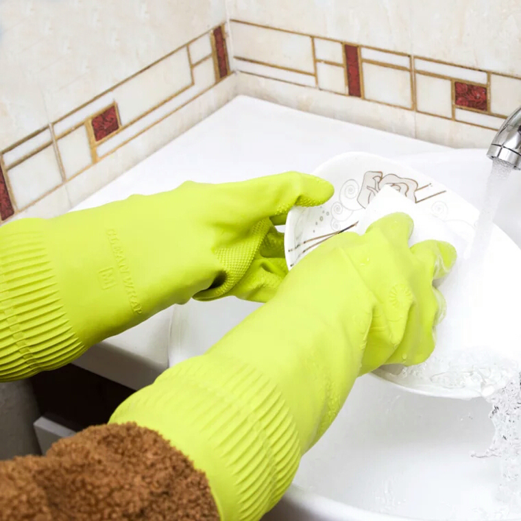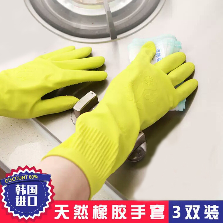 Clinley rubber gloves Household cleaning kitchen washing dishes washing clothes Waterproof natural latex thickened 3 pairs