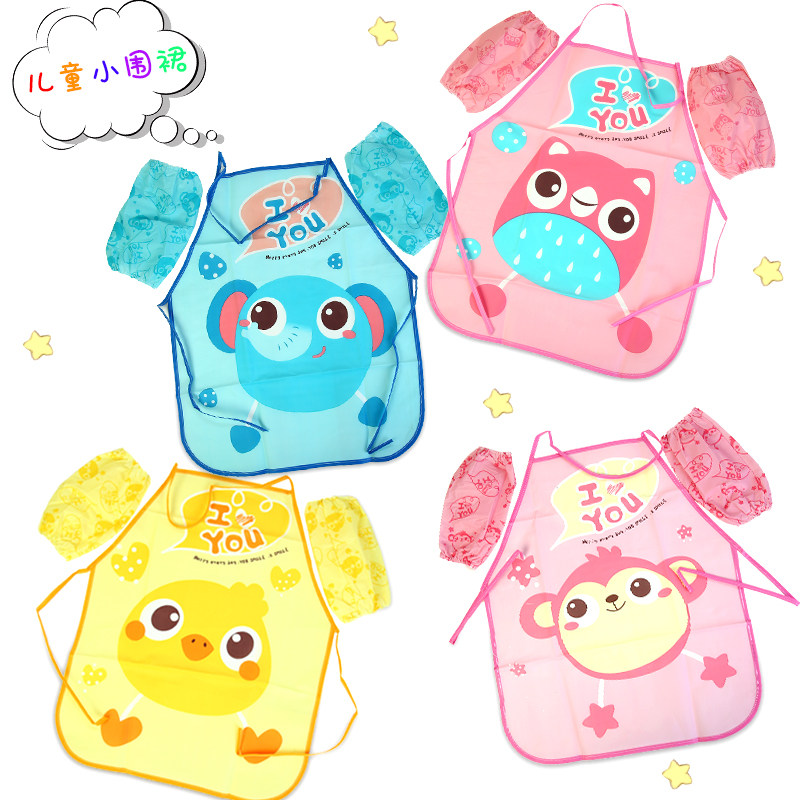 Apron (1#小象) Cuff Jacket Apron (2#小猴) Cuff Jacket Apron (3#猫头鹰) Cuff Jacket Apron (4#黄鸡) Cuff Jacket Transparent Color Long Sleeve Hood Garment