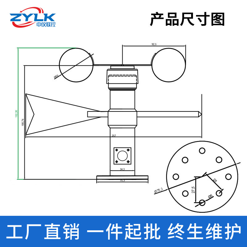 Zhongyi joint control wind speed and direction integrated sensor transmitter 485MODBUS indoor and outdoor weather 360 degrees