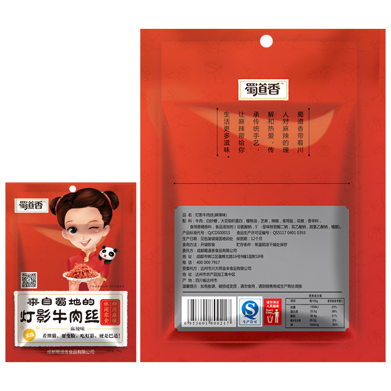 Shu Dau Incense Light Shadow Spicy Beef Meat 88g Sichuan Zero Snack Specie Produce Snack Ready-to-eat Bull Meat Dry Savory Spicy
