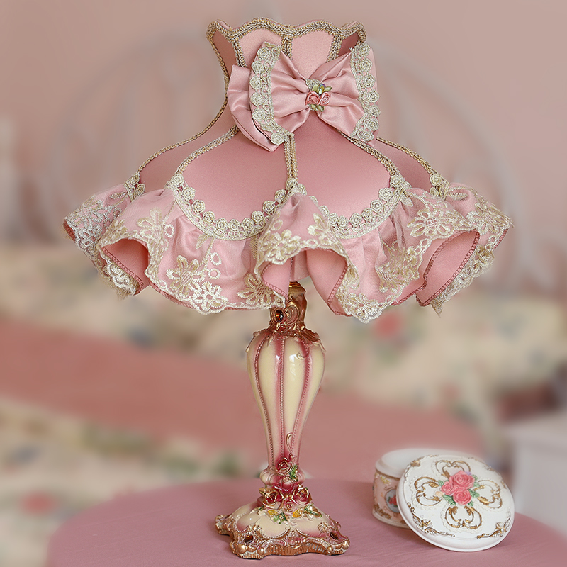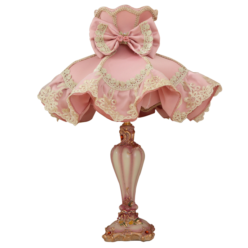 European style girl wedding room Creative girl heart warm pink table lamp Bedroom bed head lamp High-end luxury princess powder