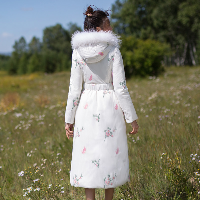 Princess 2021 Winter new Korean version jacket thickened with warm and thin medium long version with cap fur collar down
