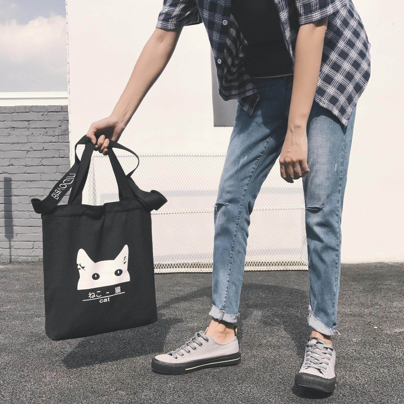 Port Wind Arts and Art Han Edition Hand Sloping Cross Casual Sails Cloth Bag Single Shoulder Bag Printed Pull Chain Environmentally Friendly Cashier Bag Student Men