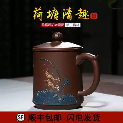 Famous purple sand cup Pure handmade Kung Fu tea cup Yixing old purple mud teacup with lid cup Office cup Water cup