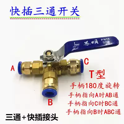 Pneumatic quick connector three-way copper ball valve quick plug quick Screw Air Compressor valve PC straight-through switch bleed valve