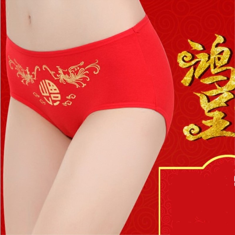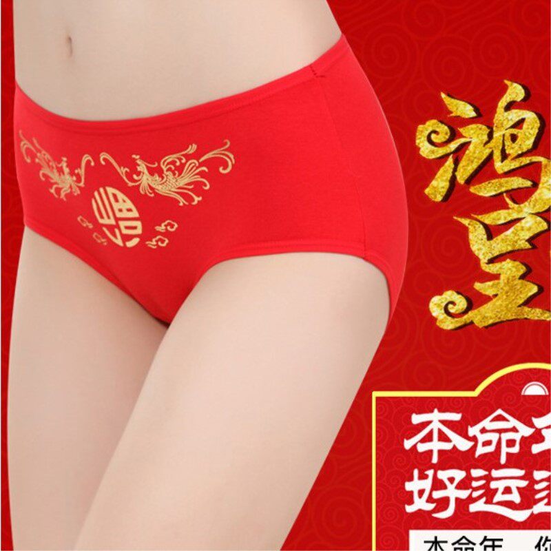 Benming year big red underwear wedding bride red underwear ladies large size Chinese red safety pants blessing character auspicious and festive