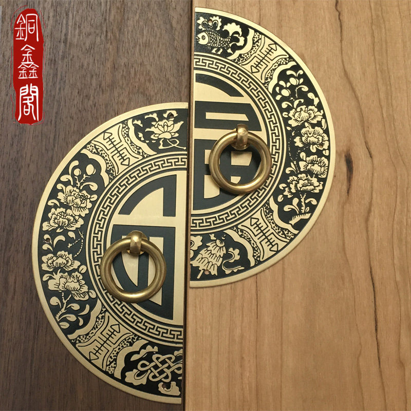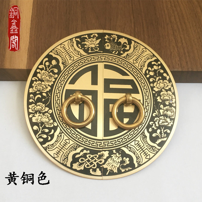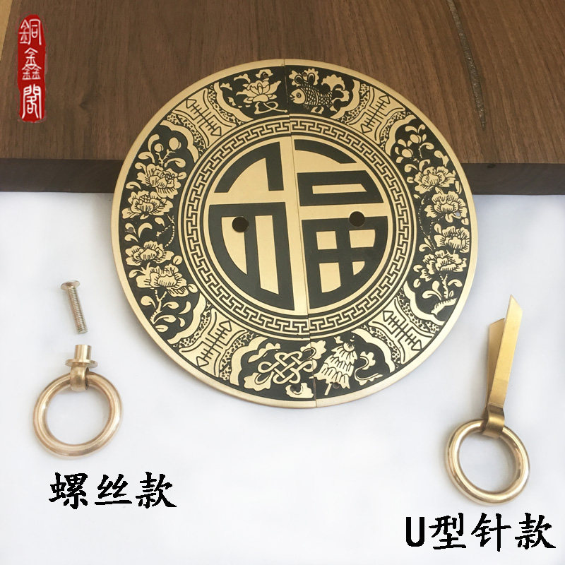Antique pure copper blessing handle clothes shoe cabinet door handle Chinese all copper handle retro overall cabinet door round copper handle
