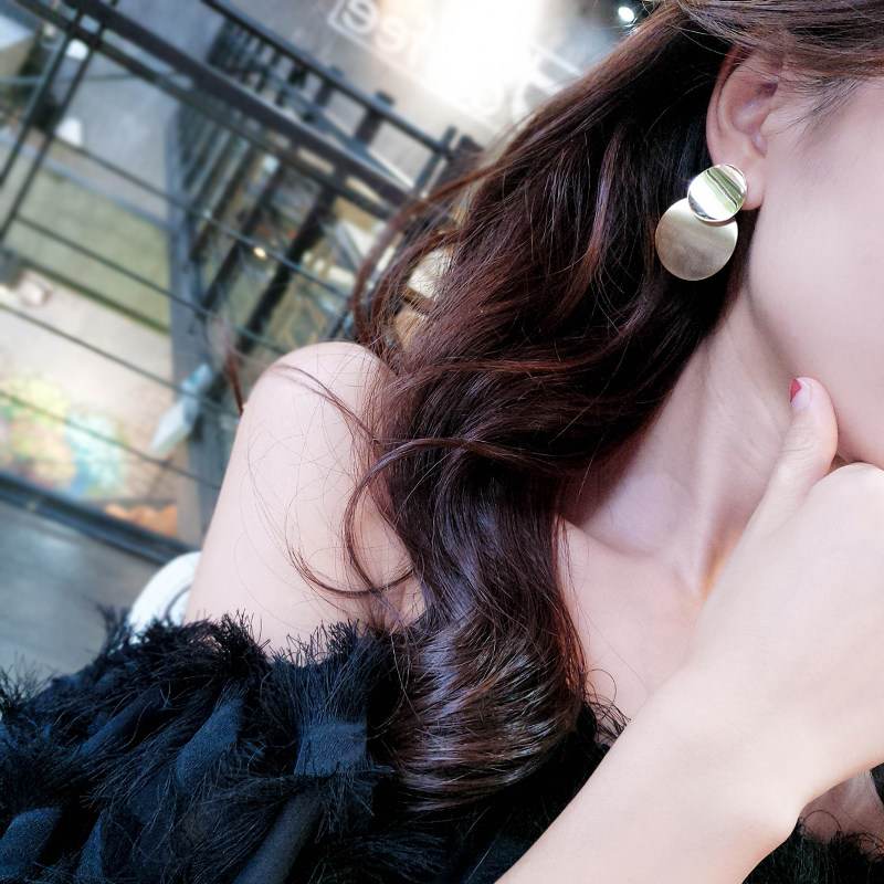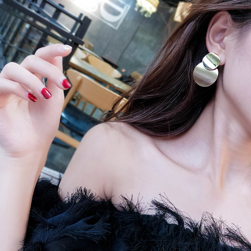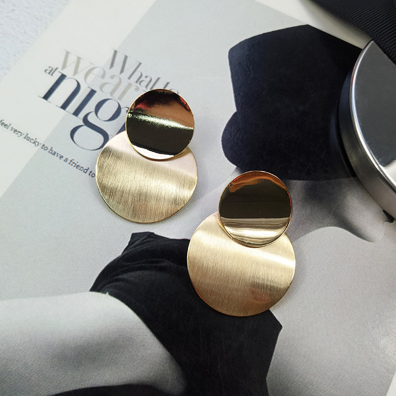 European and American retro exaggerated matte round metal earrings Female simple temperament stud earrings personality earrings fashion accessories