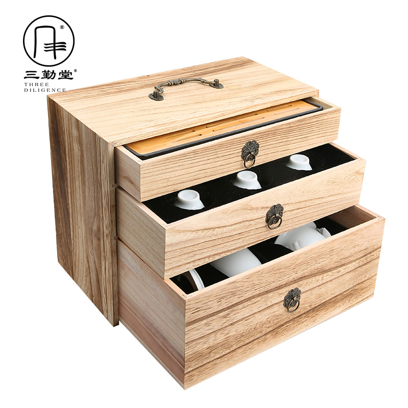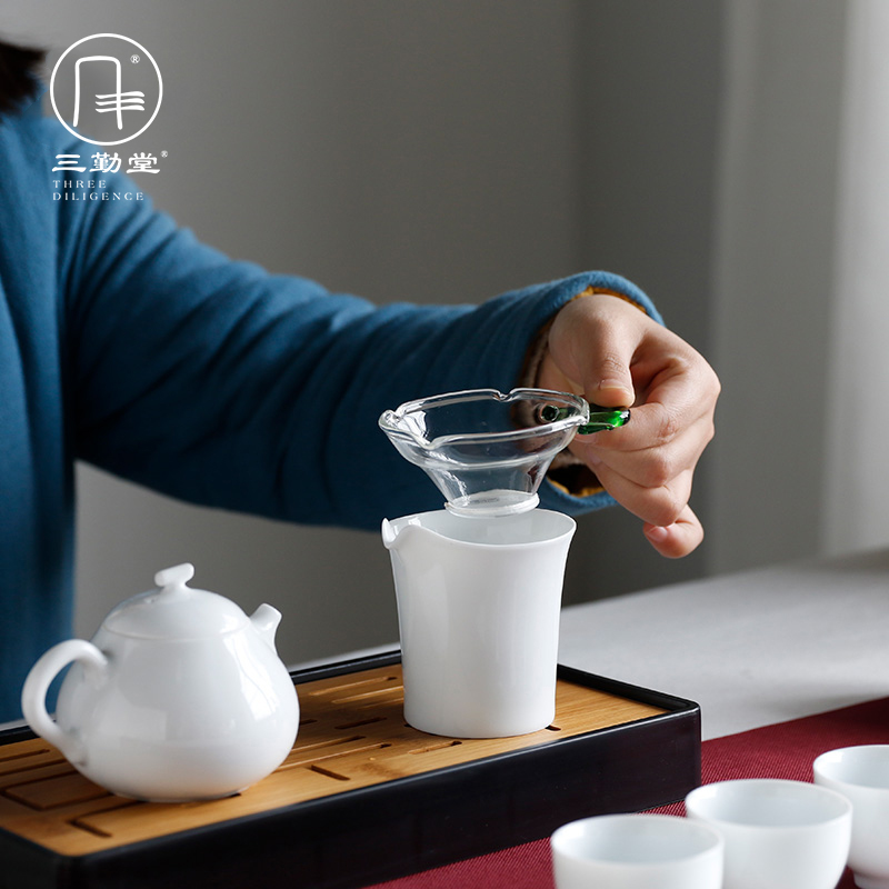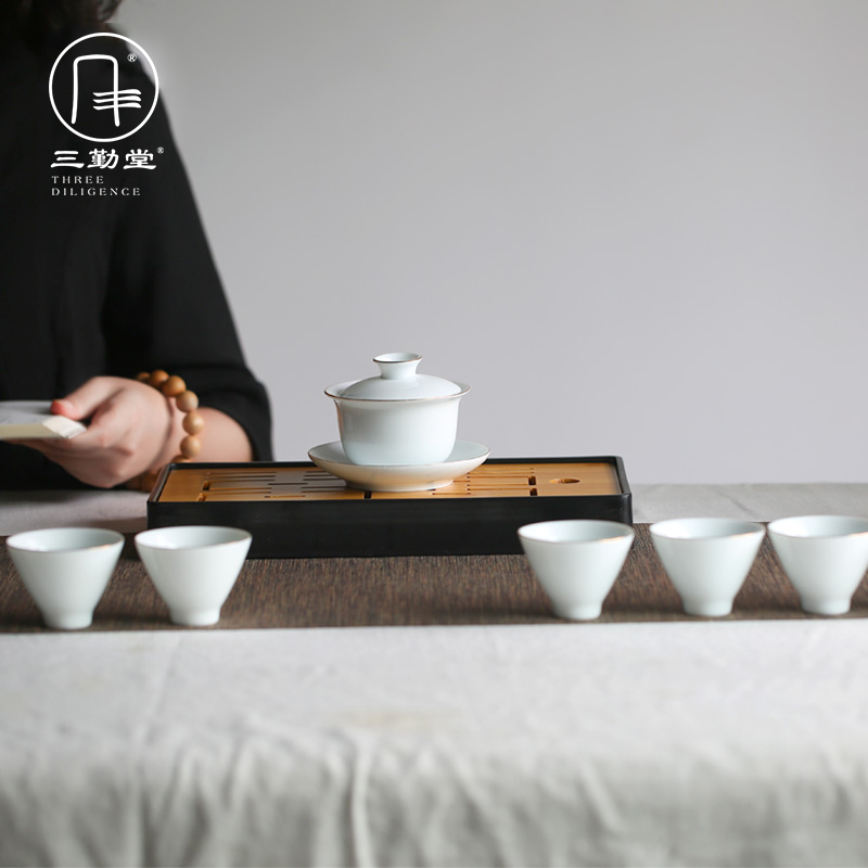 Sanqintang complete set of kung fu tea set home storage box to send Jingdezhen white ceramic tea cup cover bowl tea tray set