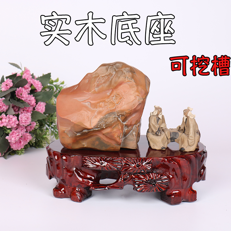 B516 boutique carved flower chishstone base solid wood can dig groove stone base jade pendulum decorated flower bonsai base