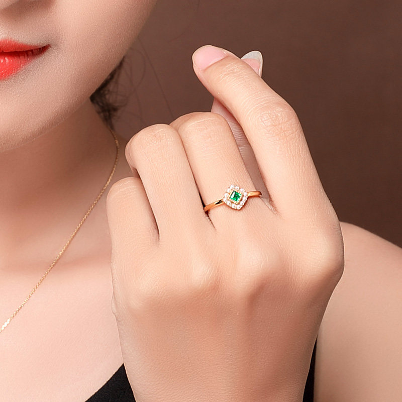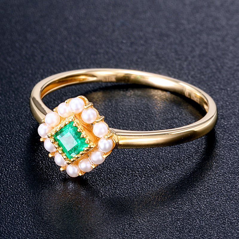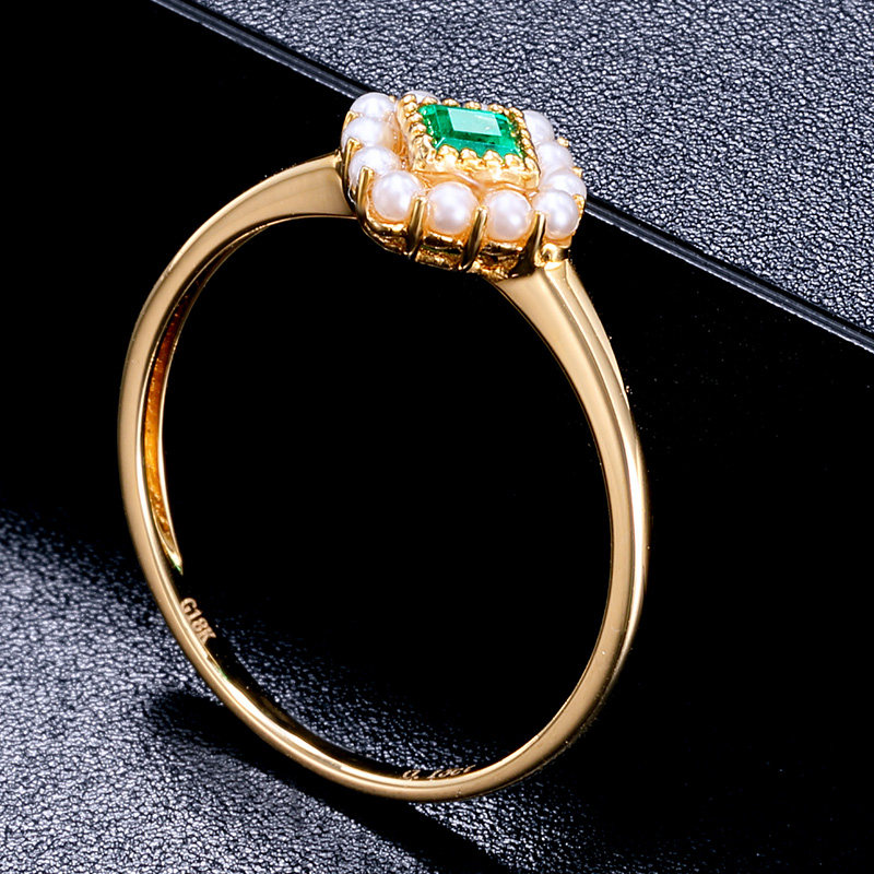 Eugenie emerald gemstone ring 18K gold niche design light luxury handmade custom decorative pearl ring female