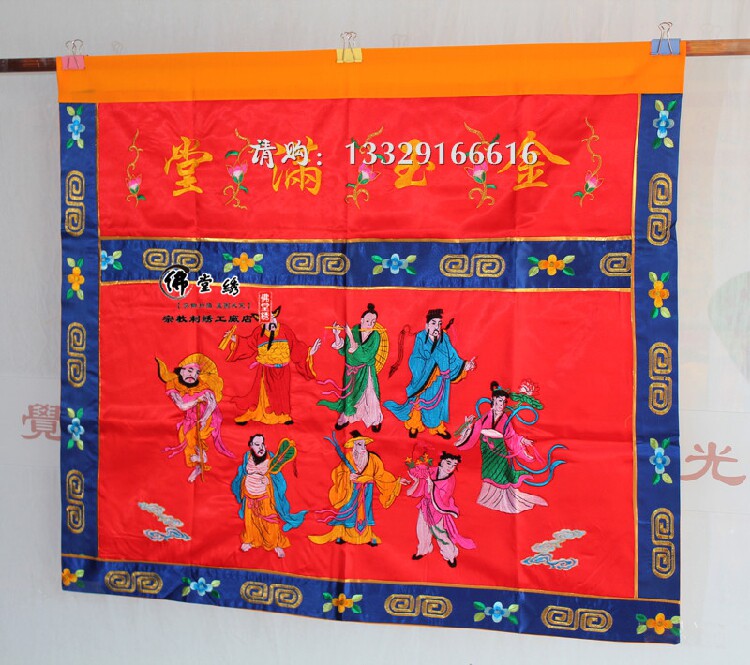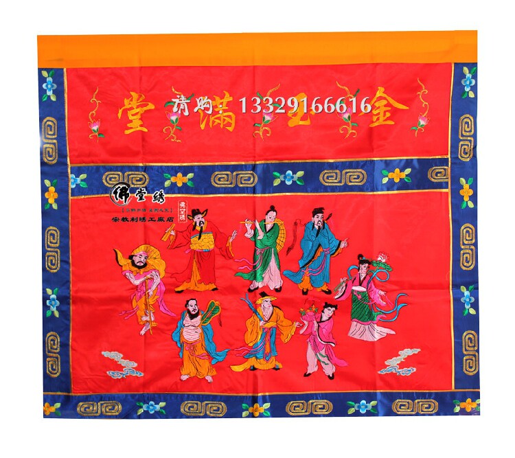 Buddha Hall Supplies 1 meter Eight Immortals Crossing the Sea Gold and Jade Mansion Red Table Surrounding Decorative Embroidery Supplies Table Surrounding Tide Embroidery Suzhou Embroidery