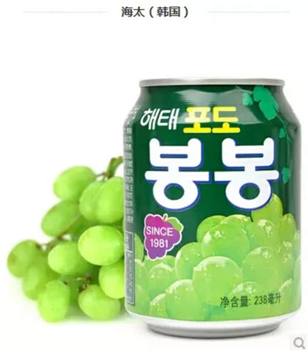 Haitai grape juice 238ml*12 cans of juice drinks Imported from Korea