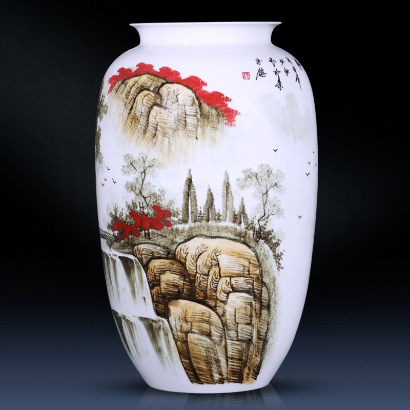 Jingdezhen ceramics floor-to-ceiling large vase ornaments large flower arrangement Chinese home living room decorations hand-painted porcelain vase