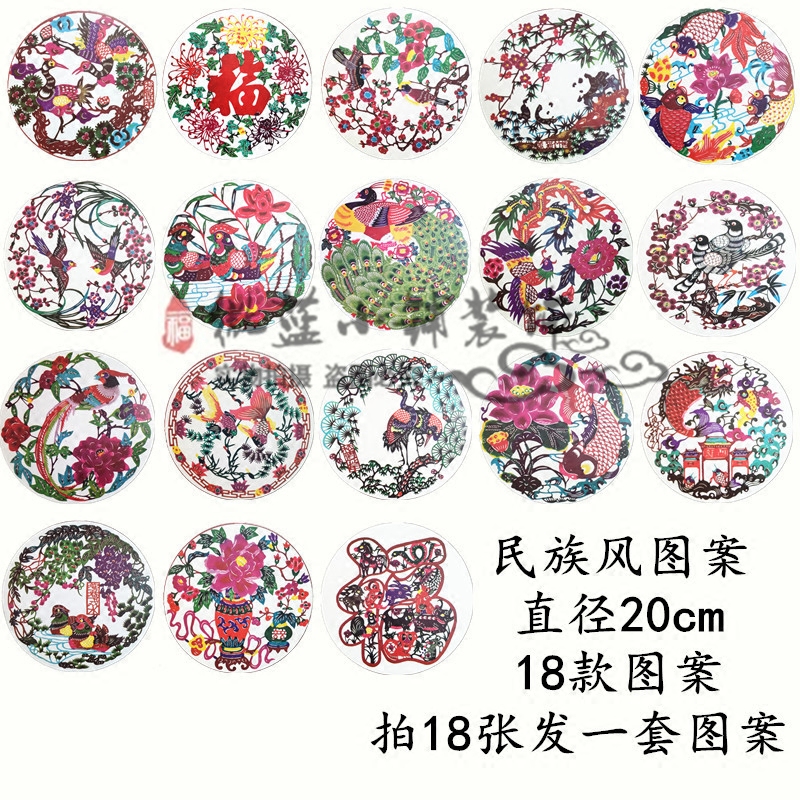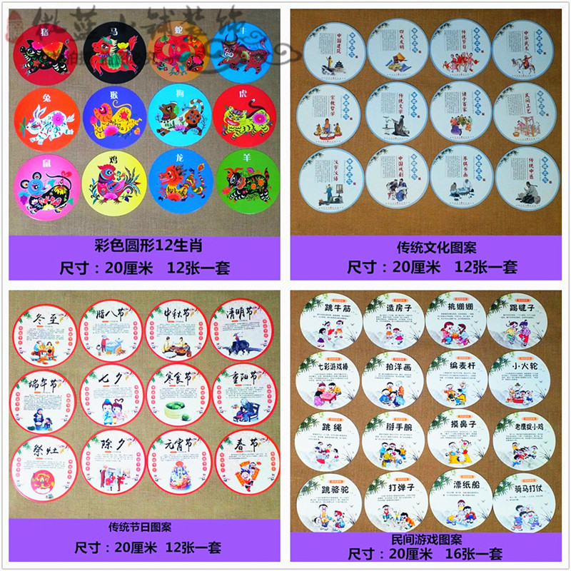 White black red yellow grey blank face spectrum 6 pieces of traditional culture pattern 12 sheets 24 knowha pattern 24 pieces of round Peking Opera characters pattern 12 sheets 23 cm green flowers disc 12 sheets 18 cm Qing