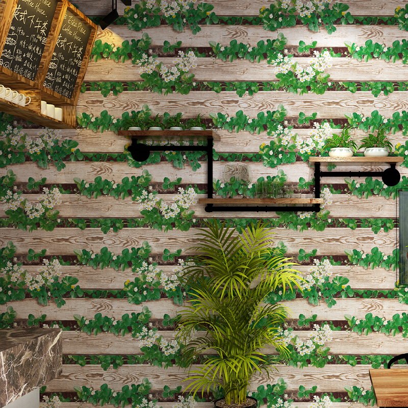 Korean style green wallpaper imitation leaf wood plate grain classical wallpaper nostalgic hotel clothing store background wall stereo