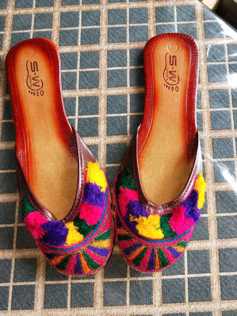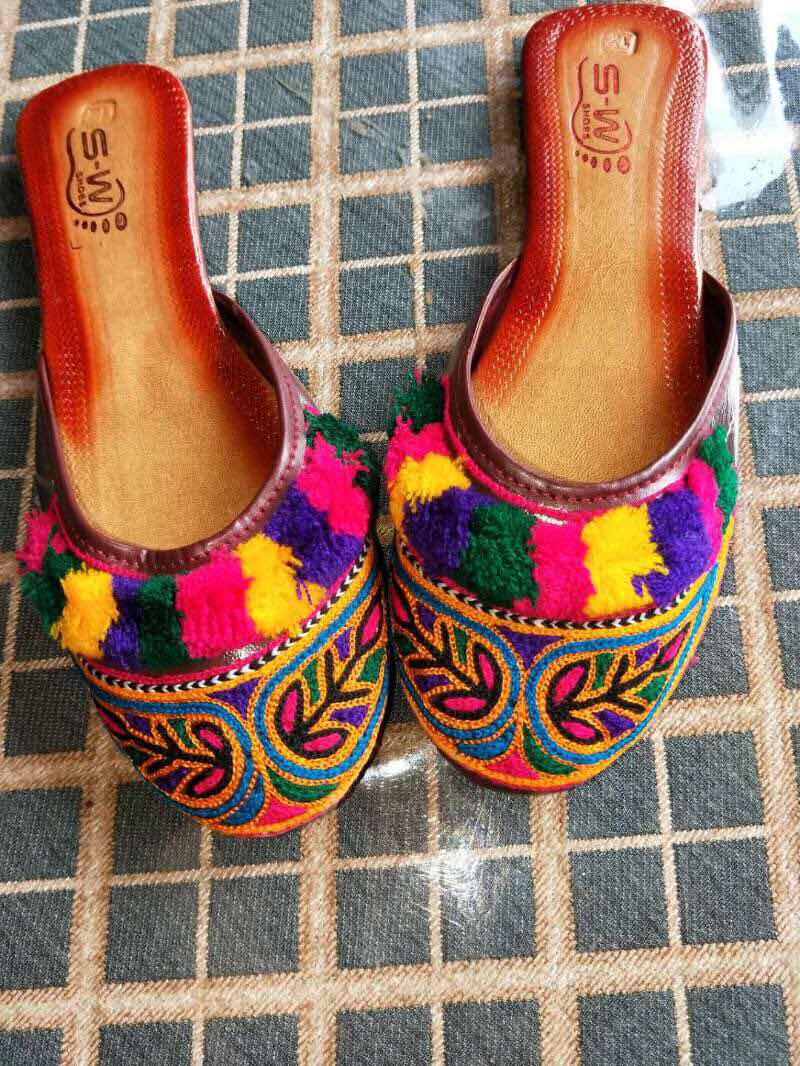 Pakistan Colored Wool Thread Handmade Embroidered Lady Slippers Tourism Leisure Nepal Thai Indian National Wind