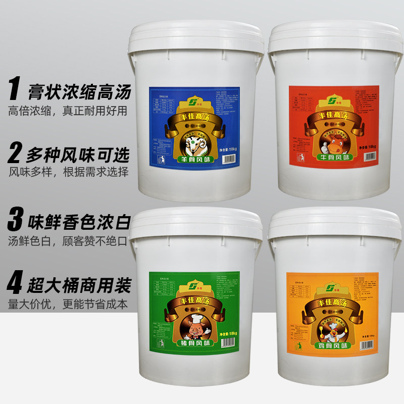 Fengjia Pork Bone Flavor High Soup 18kg Fengjia Chicken Bone Flavor High Soup 18kg Fengjia Beef Bone Flavor High Soup 18kg Fengjia Sheep Bone Flavor High Soup 18kg Golden Soup 1 Number of 18kg barrels of Golden Soup