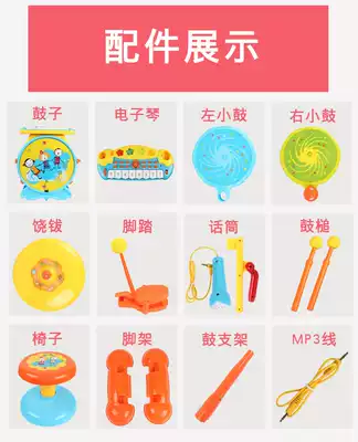 Poly children's drum set drum set for children beginner entry 1 year old Beating musical instrument Baby jazz drum toy Boy 3