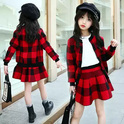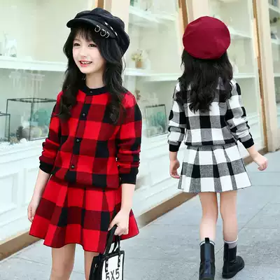 Girls Knitting Sweater Set 2020 Autumn Winter Clothing Chinese Academy Style Pullover Skirt Cardigan Two-Piece Set