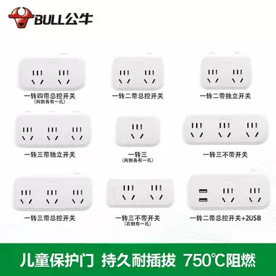 Bull wireless home one point two three four socket National standard one change multi-function multi-purpose plug plug board one turn multi-with USB conversion plug