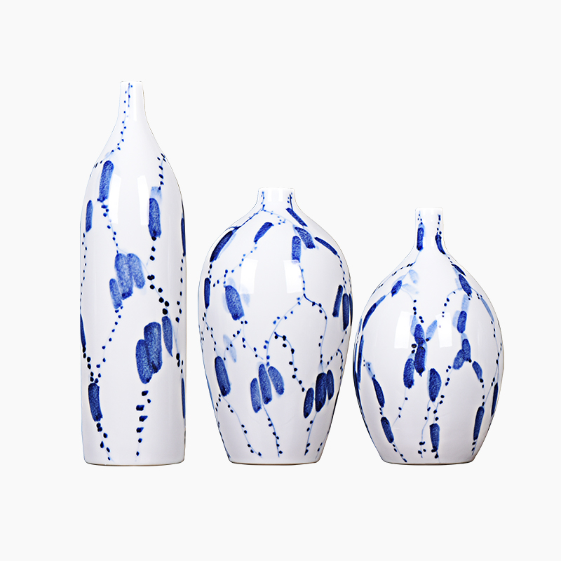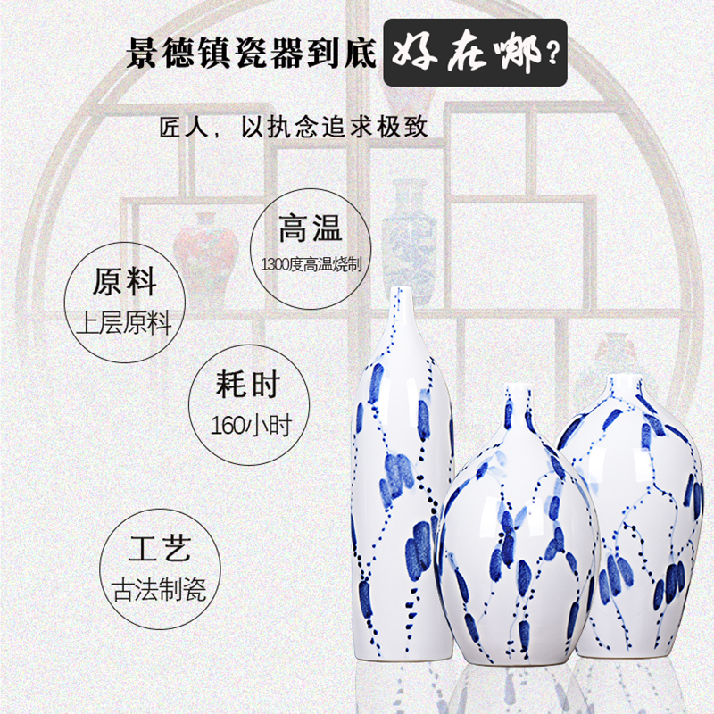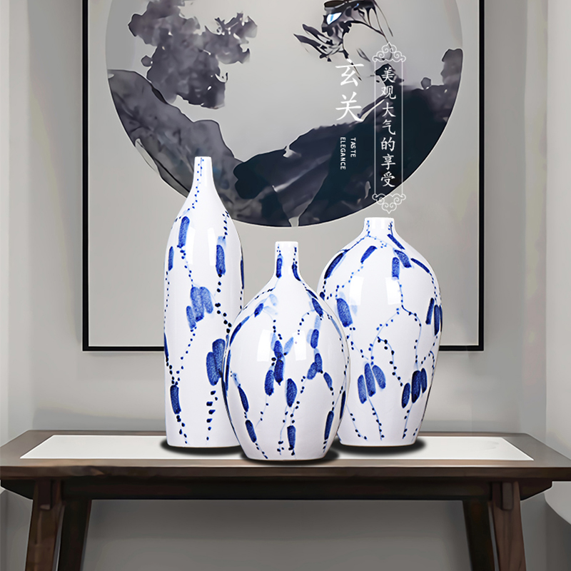 Jingdezhen Ceramic Vase Hand Painted Green Flowers Three Sets Creative Living Room Flower Arrangement Home Dry Flower Decoration Craft Swing Accessories
