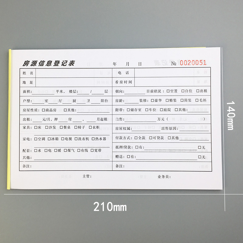 A5 listing information registration form (10 copies=28 yuan)A4 listing information registration (5 copies=44 yuan)A5 listing information vertical version (sold) 100 A5 listing information vertical version