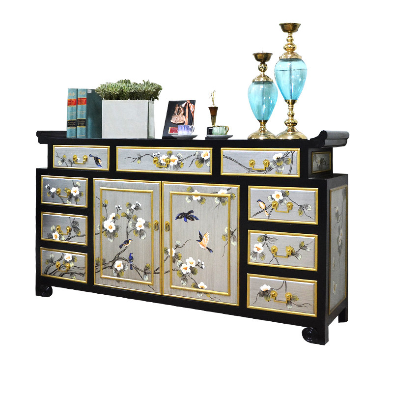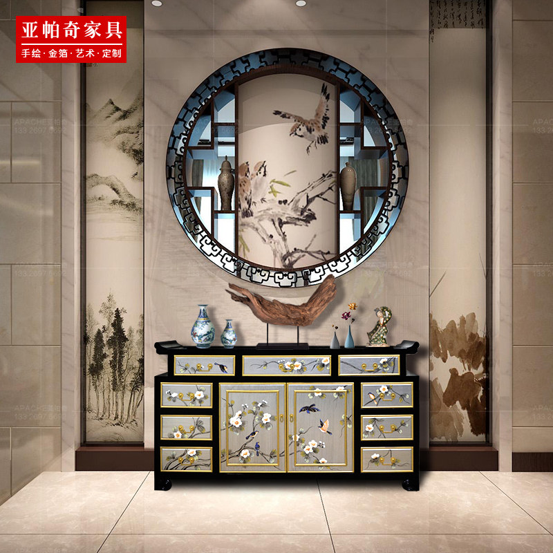 Color Painting Xuanguan Cabinet Dining Cabinet New Chinese Shoe Cabinet Solid Wood Into Door Teething Cabinet Decoration Cabinet Multi-Bucket Cabinet Lacquerware Furniture