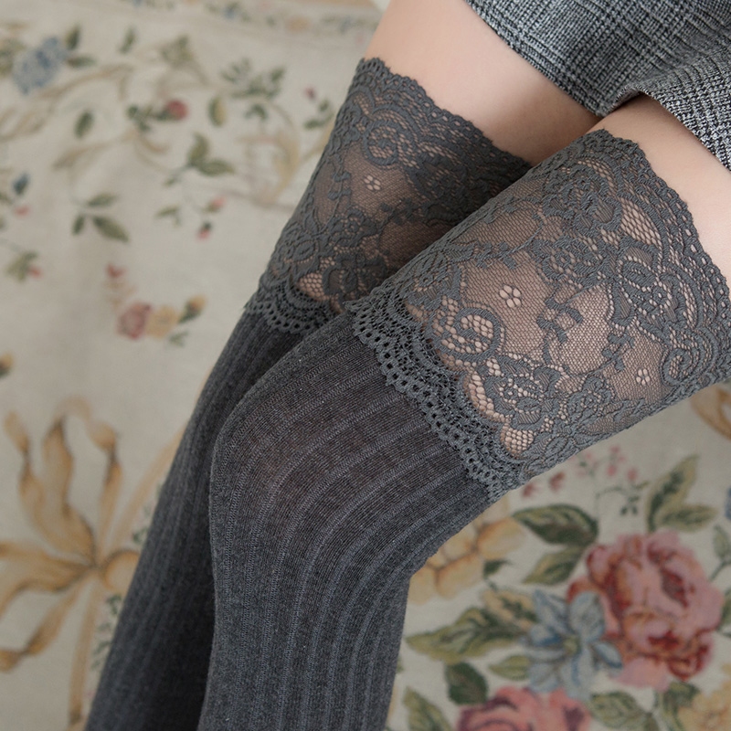 Stockings women's knee socks high tube Korean socks autumn stockings spring and autumn Japanese lace thin fashion trend