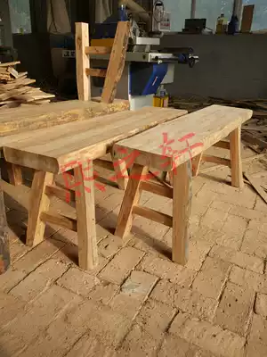 Old elm wooden stool bench Solid wood long stool double stool Log original ecological household dining stool Pastoral simple bench