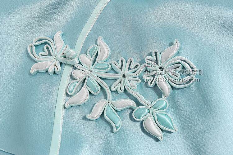 Shanghai Golden Branches Jade Leaf Qipao Qipao Senior Custom Water Blue Light Vegan Color Real Silk Handmade Large Flower Button Brief About Everyday