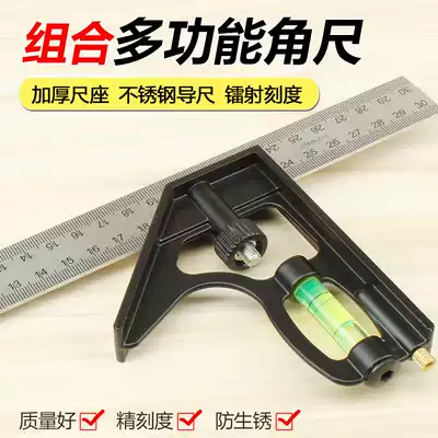 Horizontal movable angle ruler 300mm measuring ruler Woodworking right angle ruler Combination scale ruler Multi-function stainless steel turn