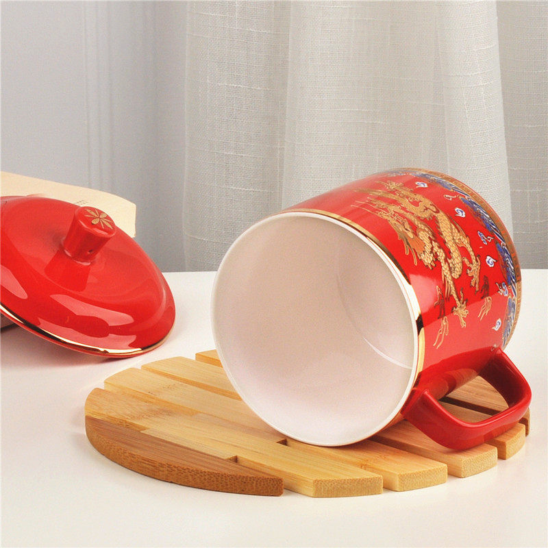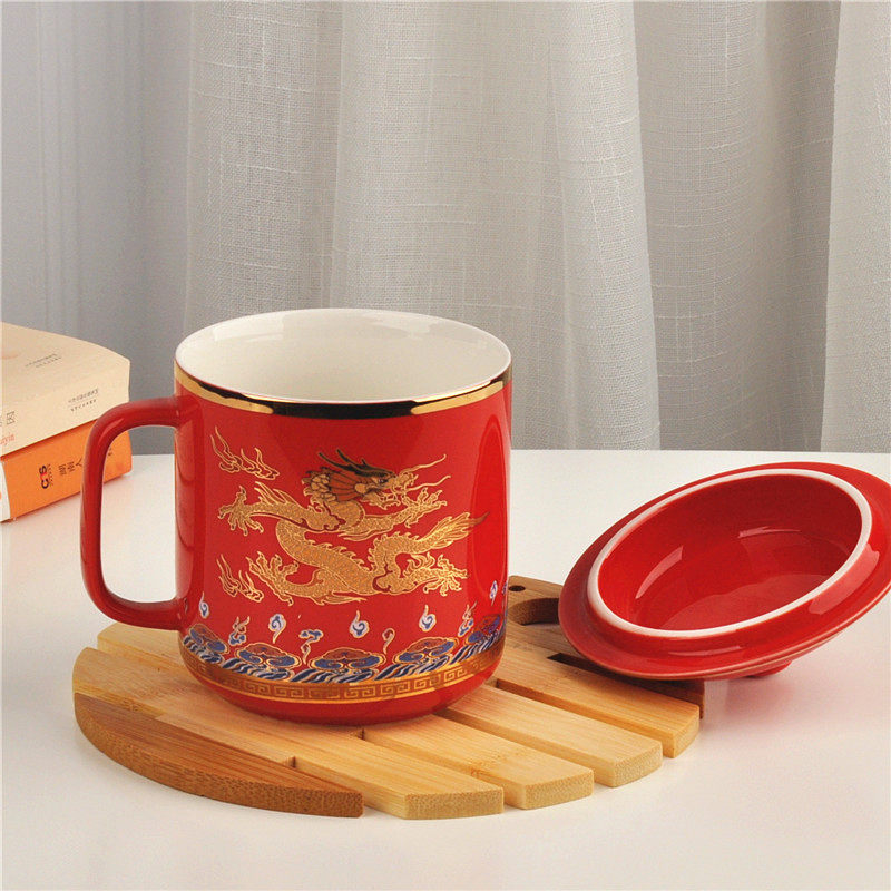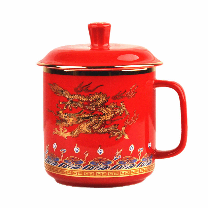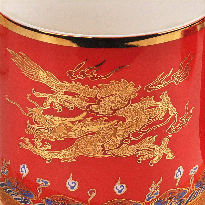 Ceramic Tea Cup China Red Water Cup With Lid Emperors Yellow Mug Golden Dragon Office Cup Facebook Boss Cup Delivery Old