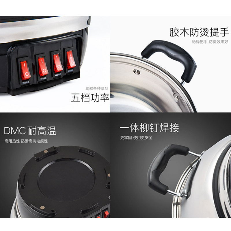 Huidang multi-functional electric hot pot 304 stainless steel electric frying pan household electric cooker multi-use electric frying pan electric hot pot