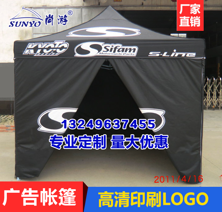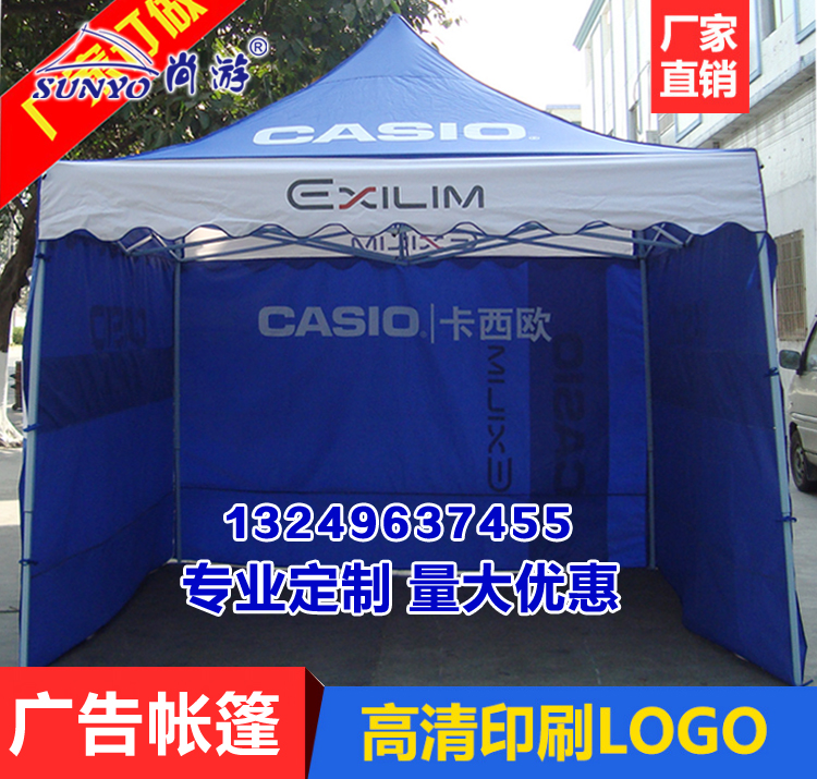 Custom-made blue and white 4-sided cloth advertising awning tent outdoor exhibition and sales four-corner large umbrella promotional activity tent
