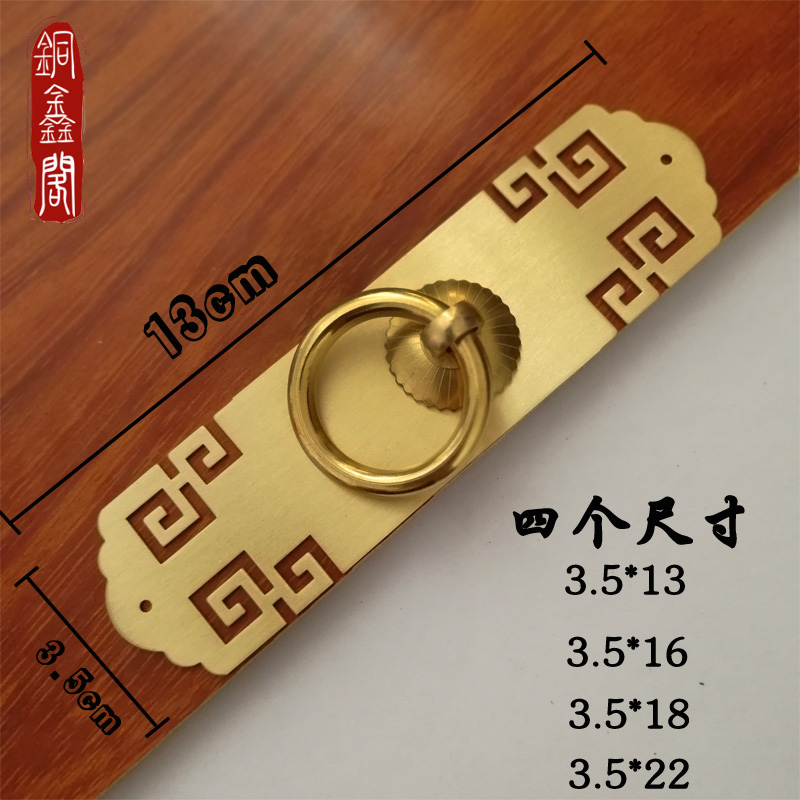 Chinese-style pure copper handle wardrobe drawer cabinet door copper handle single-hole shoe cabinet handle antique straight strip door handle