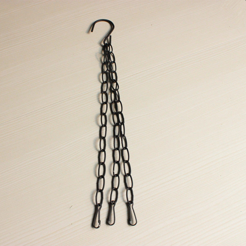 Gardening garden accessories Flower pot hanging chain Three-headed metal iron chain with hook Silver black decorative chain Flower basket hanging chain