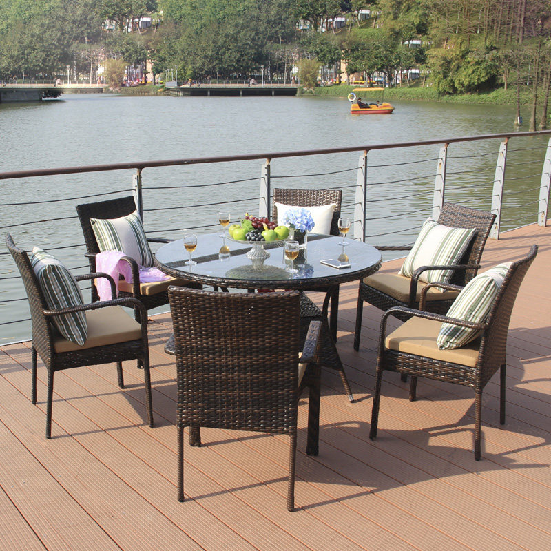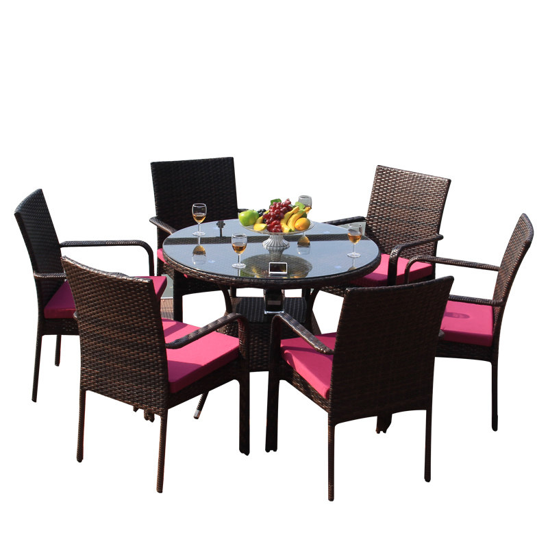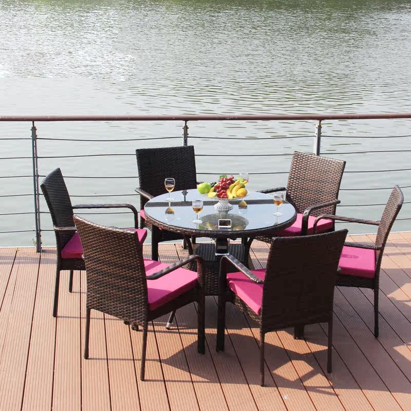 Outdoor courtyard garden leisure rattan table and chair living room dining table and chair creative rattan one table six Chair combination customization