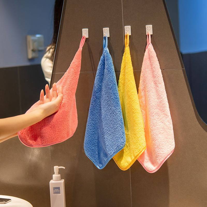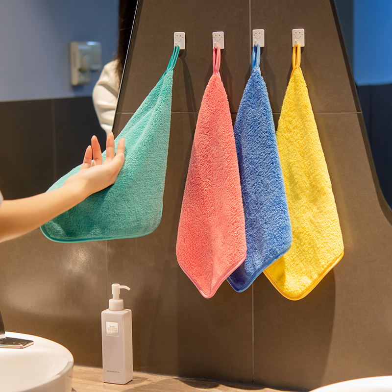 Plush towel Household small square towel Powder room kitchen hand towel is softer than pure cotton Super absorbent thickened hanging type