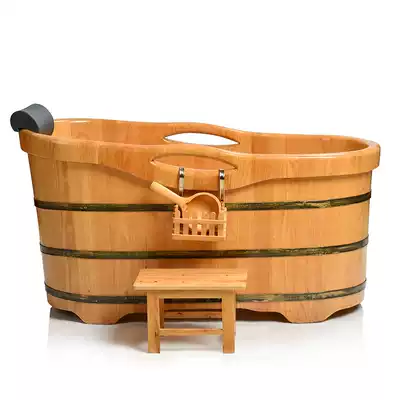 Chuan cypress fat cedar wood bath bucket Wooden barrel Bath bucket Solid wood bath bucket Adult full body bath with lid Wooden bathtub