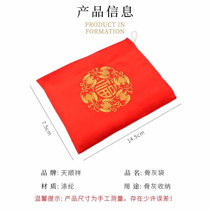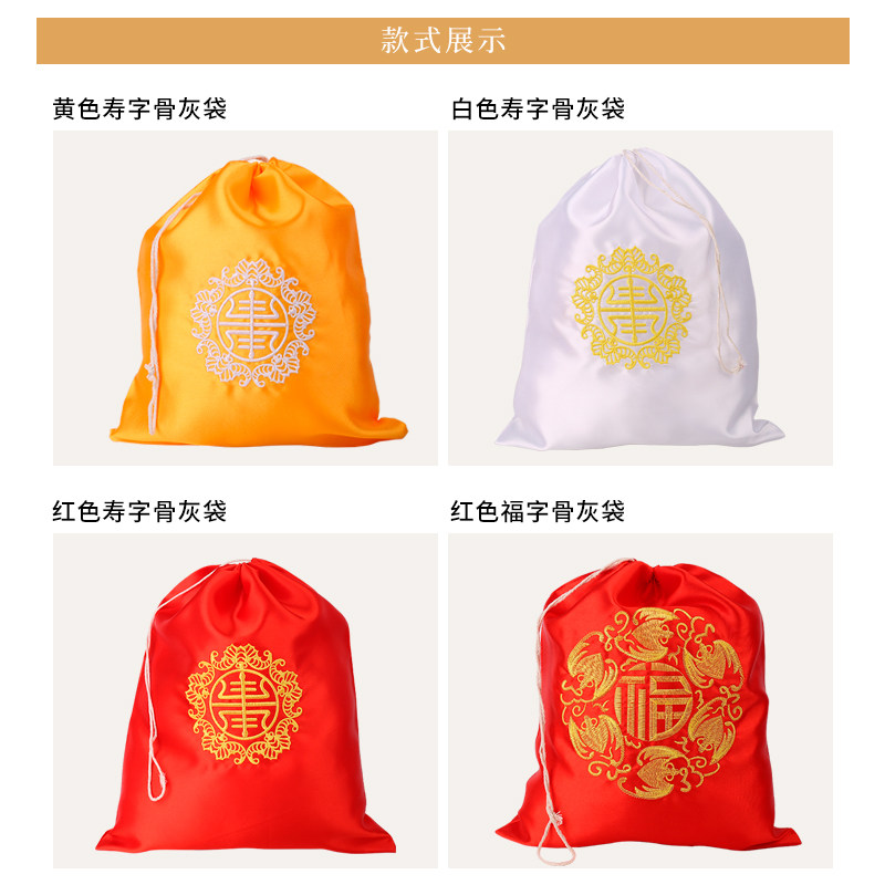 White Shouword Embroidered Ashes Bag Red Fu Character Embroidery Ashes Bag Red Sushi Embroidered Ashes Bag Yellow Suletto Embroidered Ashes Bag