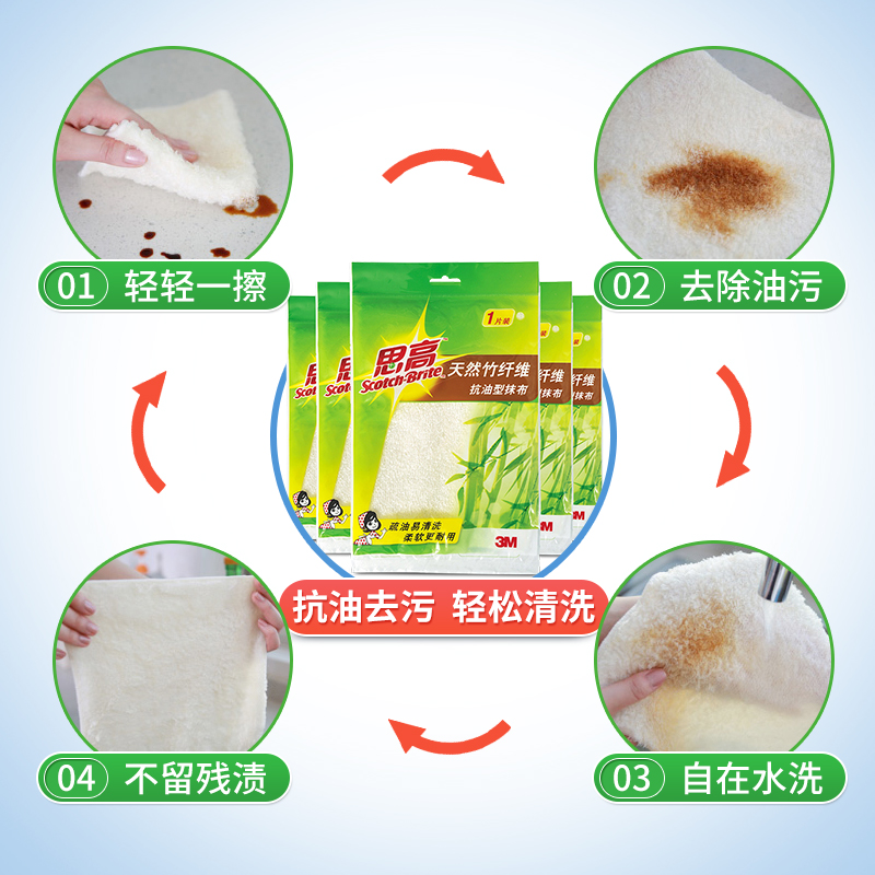 3M Sichu Bamboo Fiber Rag Kitchen dishwashing cloth for cleaning household with decontamination resistance removal cloth