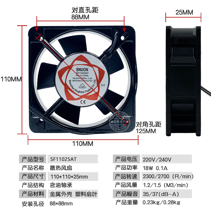SF11025AT heat dissipation small fan 220V pure copper wire core KTV host shell fan 2122HSL enclosure fan