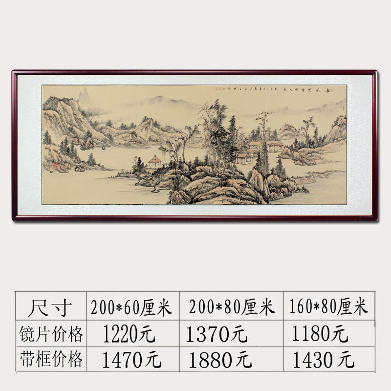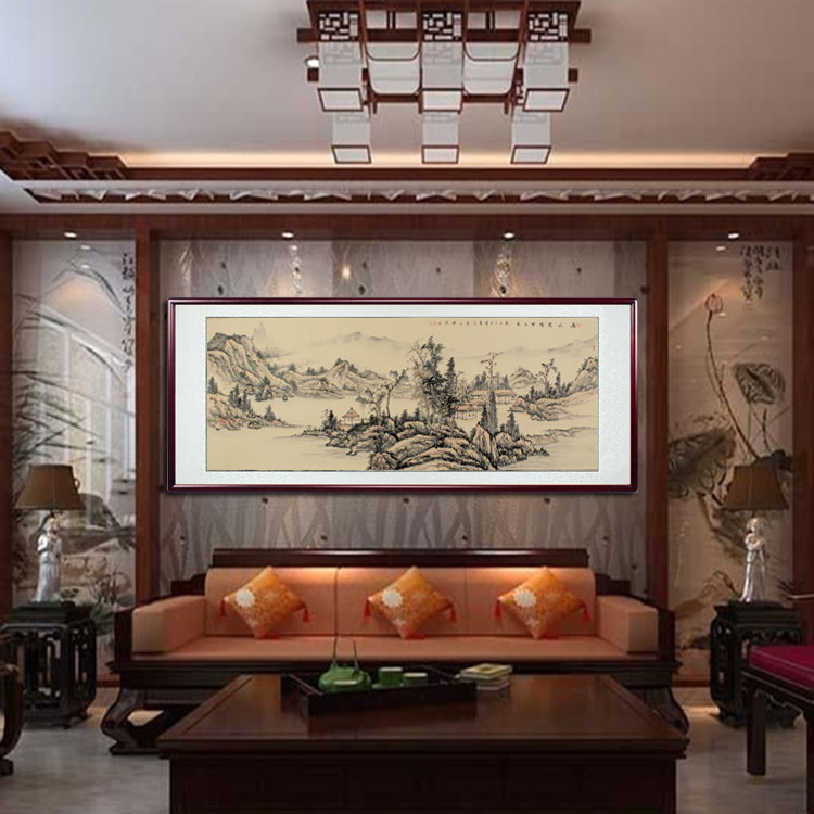 Hand-painted Chinese painting landscape painting new Chinese painting antique with solid wood frame living room office hanging painting villa calligraphy and painting