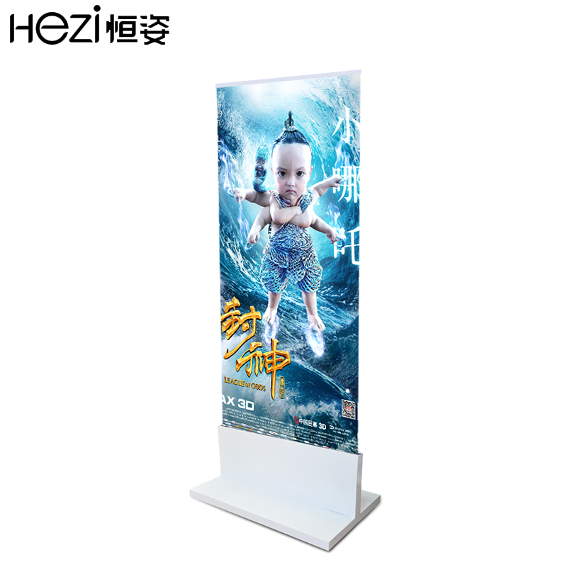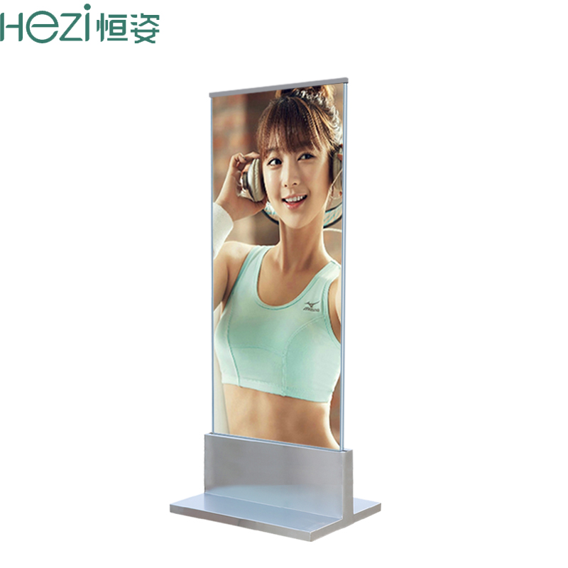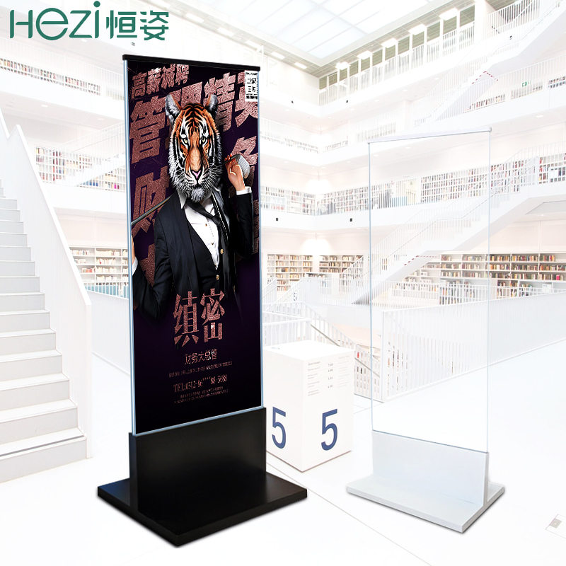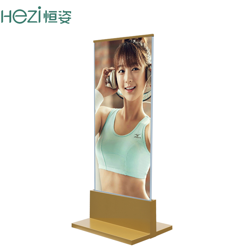 Hengzi shopping mall stand stainless steel floor-to-ceiling double-sided poster frame Glass acrylic advertising sign T-type base