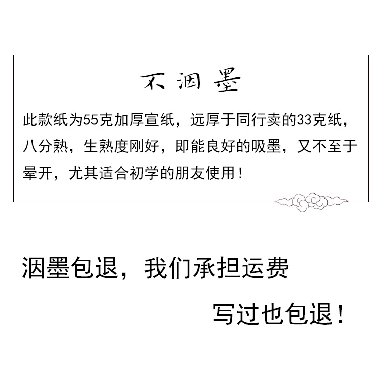 Xuan paper half-baked eight-point-cooked practice works thickened brush calligraphy French painting special copy beginners three or four feet