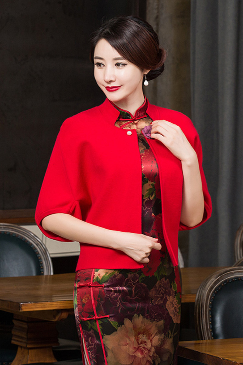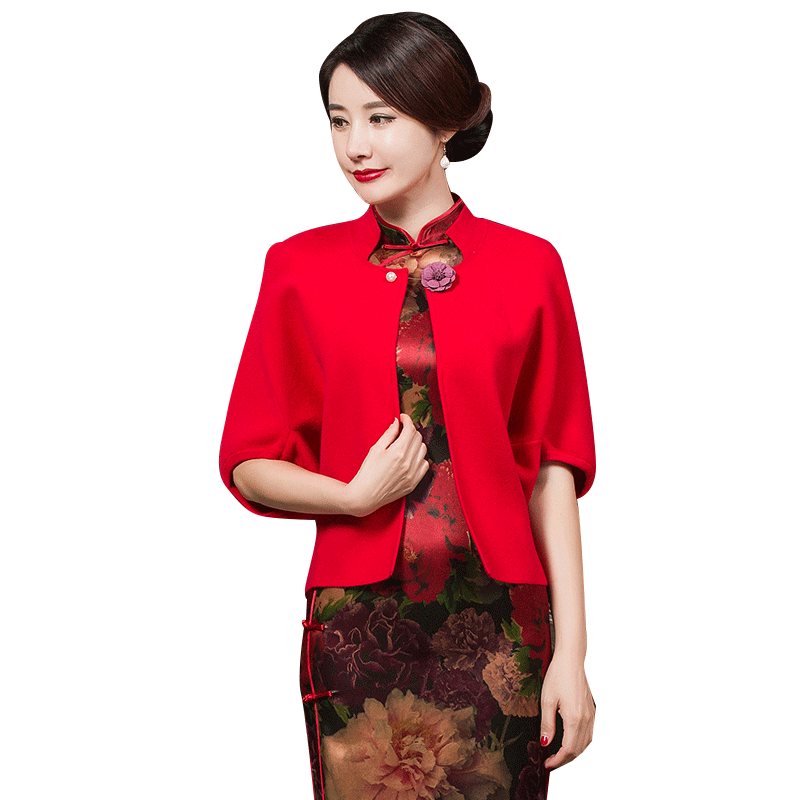 Lamb wool Banner Gown Cape Woman Elegant Spring Autumn Short Dress Matching Qipao Outfits Outfits A Small Jacket Cardio-Taobao