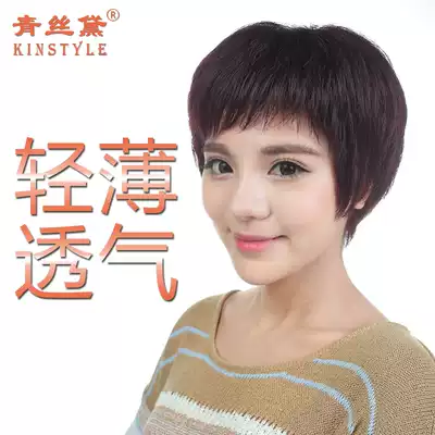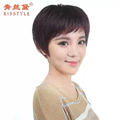 Green silk hair wig female short hair full hand woven short curly hair middle-aged and elderly mother wig set realistic and breathable