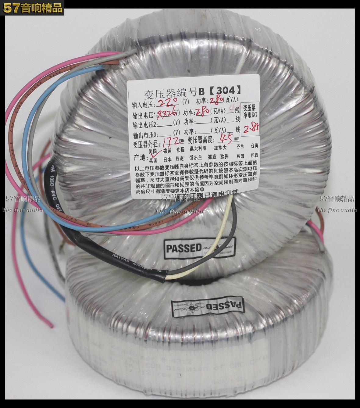 Second-hand imported transformer American dismantling sunflower ring cow 280W input 220V output double 66V B304