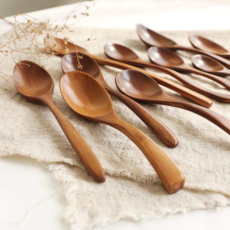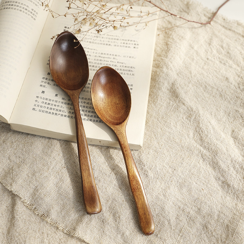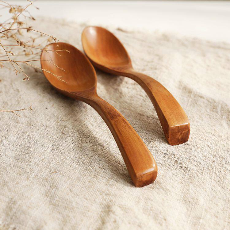 Natural solid wooden spoon Household children's anti-scalding jujube branch wooden soup noodle rice spoon Long handle seasoning mixing spoon